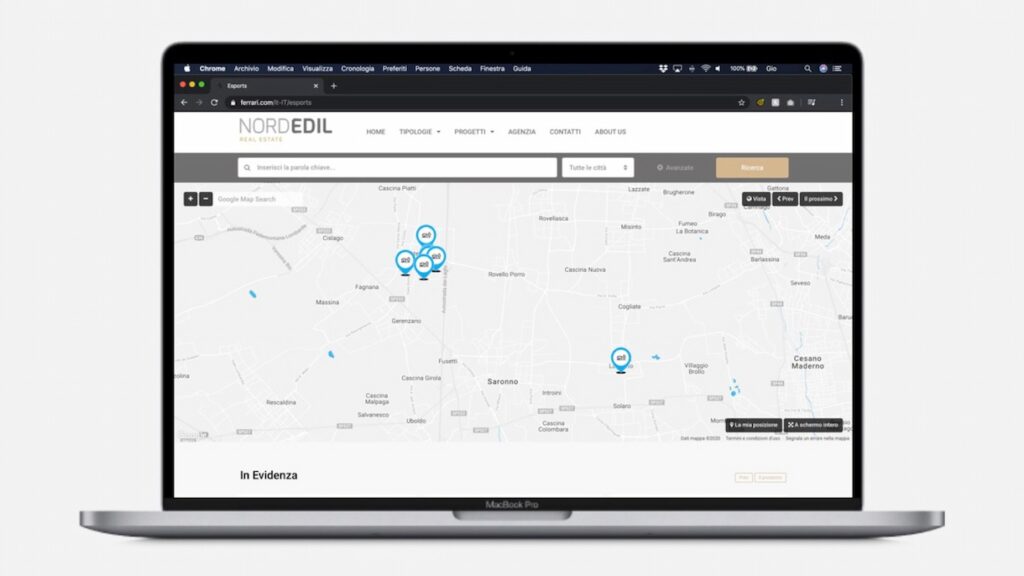Il progetto web della vetrina immobiliare online realizzato su piattaforma WordPress per aggiornamenti in completa autonomia da parte del cliente.